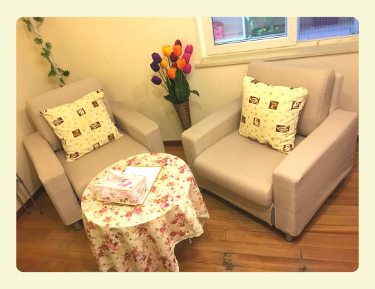 成立之初,知馨只有兩名心理咨詢師,完全按照傳統(tǒng)心理咨詢個(gè)人工作室的模式開展個(gè)案咨詢。當(dāng)時(shí)我們只有一間心理咨詢室,兩名咨詢師既要接待來訪者又要提供心理咨詢,還要兼職收費(fèi)。知馨的第一間咨詢室不算大,咨詢設(shè)施也不完善,但我們盡可能將咨詢室布置得簡單、溫馨,給來訪者以安全和溫暖。